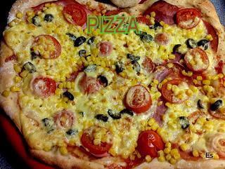 Kvások rozkvasiť na dvakrát - prvýkrát 2 lyžice kvásku, hrnček ražnej múky a hrnček vody - 6 - 9 hodín, druhýkrát pridať hrnček pšeničnej múky a necelý hrnček vody a nechať 4 hodiny. Potom pridať pizzovú múku asi 600 g, asi 300 ml mlieka, zopár lyžíc olivového oleja a soľ.